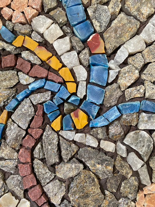 Stone and Plastic Circular Mosaic ~ Contemporary Environmentally Friendly Wall Art