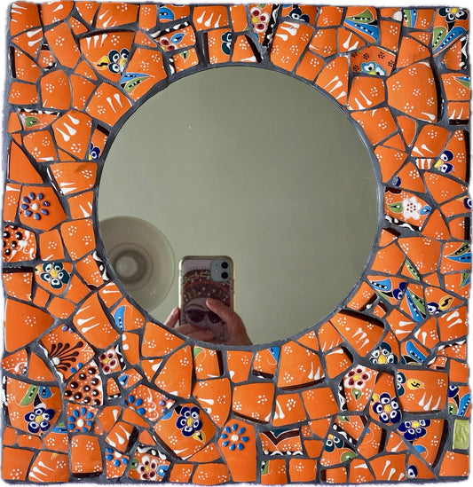 Vibrant Orange Mosaic Mirror, made from Broken Turkish Crockery ~ Colourful Home Decor